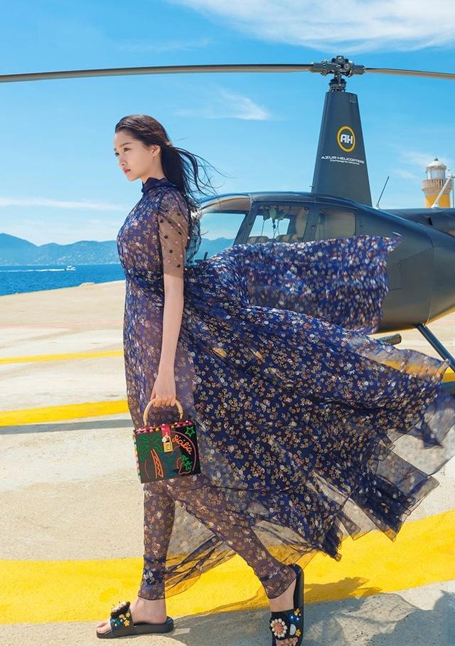 而就算不是小白鞋的青春搭配,也不是小皮鞋的可爱路线,关晓彤穿一双拖鞋拍写真也是许多女星不敢想的。这整个下半身的搭配也真的是单单靠腿给硬撑过来的。