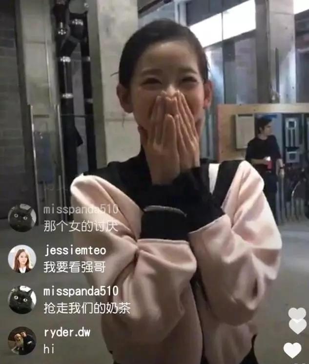 有弹幕提醒奶茶妹妹,离得太近显得脸大,奶茶妹妹非常可爱的远离了镜头,还捂住了脸,她真是个可爱的人。但是看看上面的图片,我能在哪里看到大脸?这显然是标准的瓜子脸。