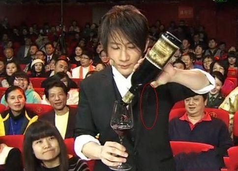 2013春晚,刘谦的魔术表演,玻璃杯穿酒瓶。实际上是酒瓶上有缺口,刘谦倒酒的时候,缺口未被刘谦完全遮住,酒漏了。