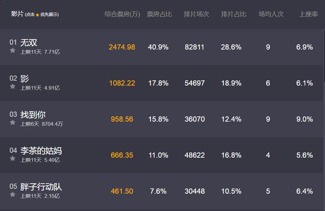 目前由张艺谋指导,邓超、孙俪主演的影片《影》还在热映当中。该片因其精良的制作水准以及扣人心弦的故事情节,在上映后便收获好评不断。在上映11天的时间里,票房也一直稳步上升,截止目前已经收获了4.9亿的票房成绩。