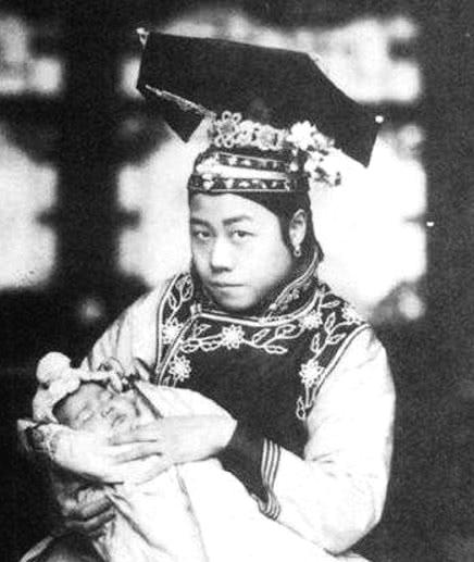 晚清的后宫中满洲的女子,手里抱着一个小孩,只是说实话这个女子看起来有点像个男子啊,要是没有旗头的话应该和男子没有什么不同吧。