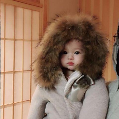近日樊少皇的爱妻贾晓晨晒出了自家女儿小饭兜的正面照,估计是天气冷了,小饭兜也有了自己毛绒的冬衣,看一张小脸藏在毛绒绒的帽子里,真可爱!