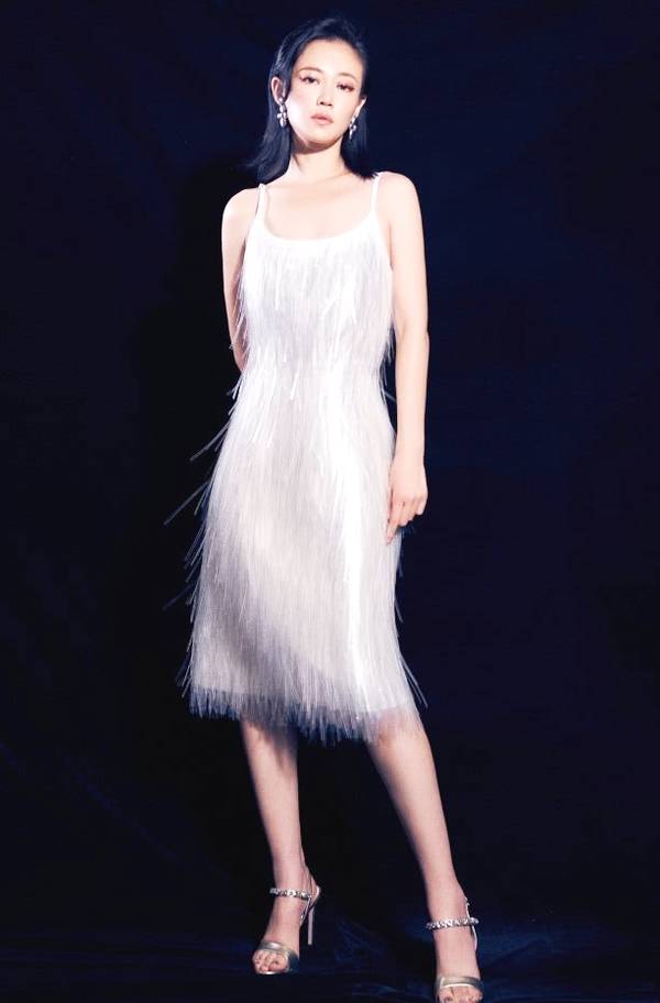 谭卓的其它造型也很独特,我们来看看。她穿的这件裙子,也是吊带款裙装,这款则是流苏元素,看起来很梦幻,简直是整身造型最为抢镜的元素。加上修身款,秀出她凹凸有致的曼妙曲线,更显撩人。