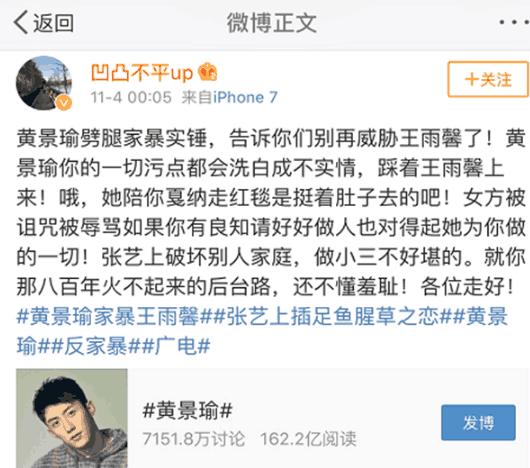 最近这段时间,网络上关于黄景瑜和他前女友王雨馨的消息非常多,而且大多数都是在说黄景瑜家暴的事情,虽然黄景瑜本人并没有正面回应什么事情,但是他的前女友却频繁的出现在热搜榜上,并且爆出黄景瑜不仅家暴自己,还在自己守孝的时候出轨小三,她觉得自己真实太可怜了。