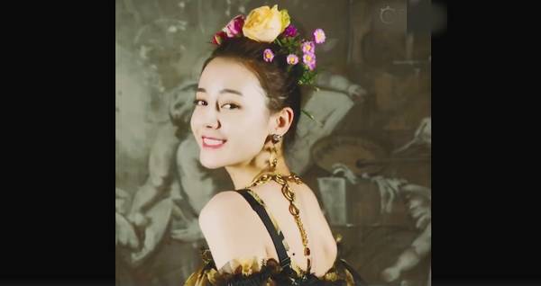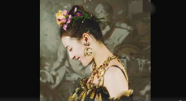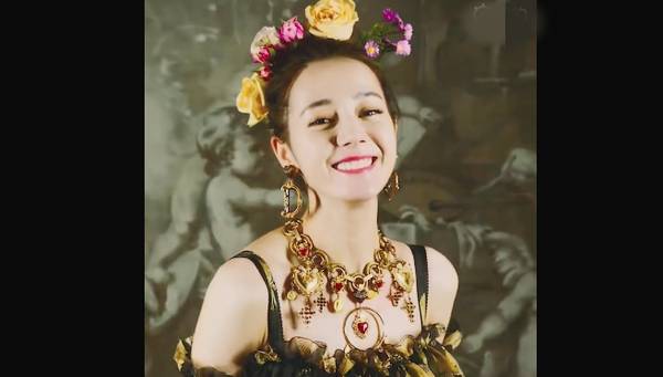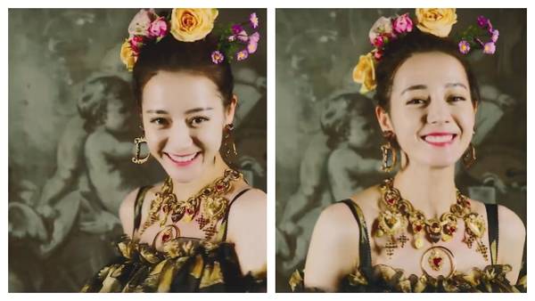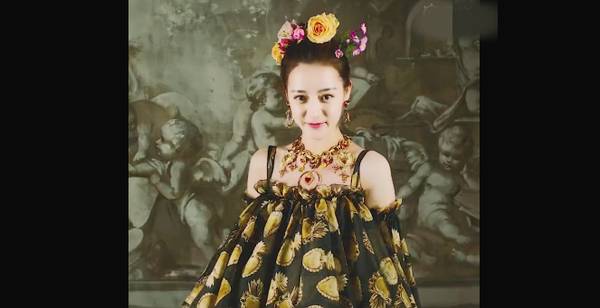而品牌最新曝光的一辑广告中,热巴新造型惊艳亮相。只见热巴身穿黑色吊带图案短裙,头戴满满的花朵头饰,整个人显得非常娇艳明丽。