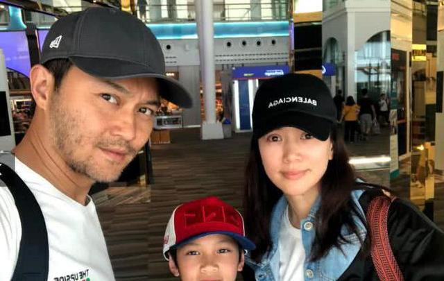 张智霖儿子近照曝光,对镜头露甜笑,一家三口同框颜值高