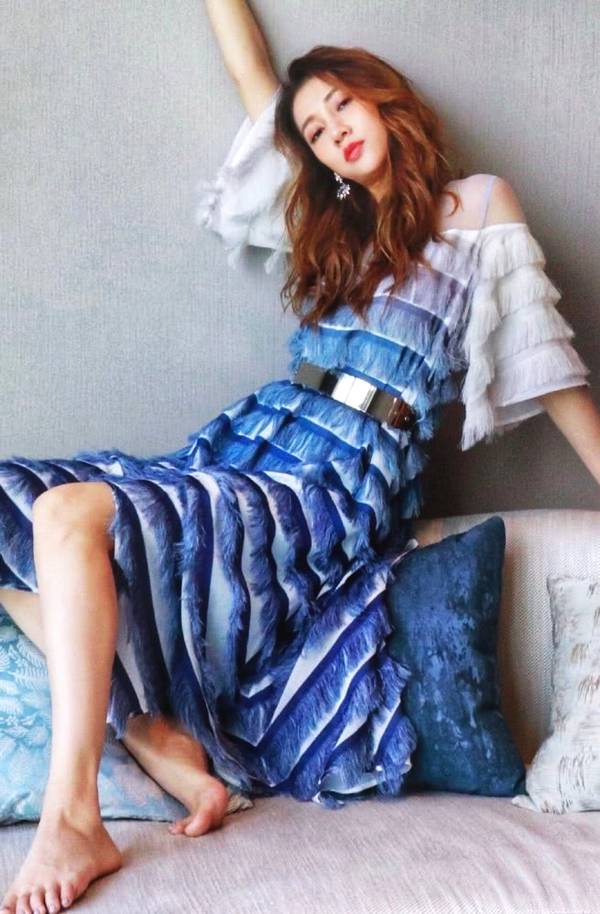 弦子为时尚也疯狂,一头波浪卷长发,悠闲甜美满满少女气质