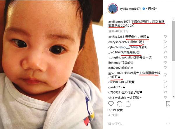 照片中小谷沐萌萌地看着镜头,右眼的确如张震岳描述的那样是单眼皮,不过也有网友发现最像张震岳的地方还是他的鼻子,评论道:“鼻子像你,无误”、“很像你呢!”、“根本是翻版”。