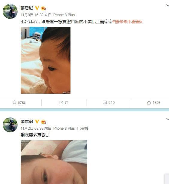 今年7月份,张震岳亲自公布奉子成婚,9月份妻子为他生下了大胖小子,之后张震岳也加入了晒娃一族,竟然在社交账号中分享儿子的萌照,还非常有意思的调侃儿子的肤色和自己一样是自然的不美肌,一点都不怕儿子黑。