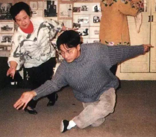 张国荣跟着京剧大师张曼玲学戏。