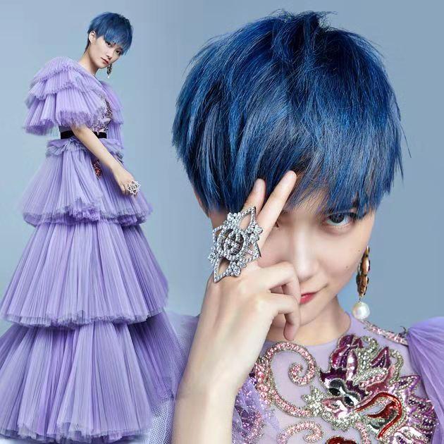 慢慢的,春春杀马特发型收起了放射状的张扬,更加简洁干练了。服装搭配上也讲究了起来,直到妥妥地撑起大牌的气场,难怪古琦什么的都青睐她。