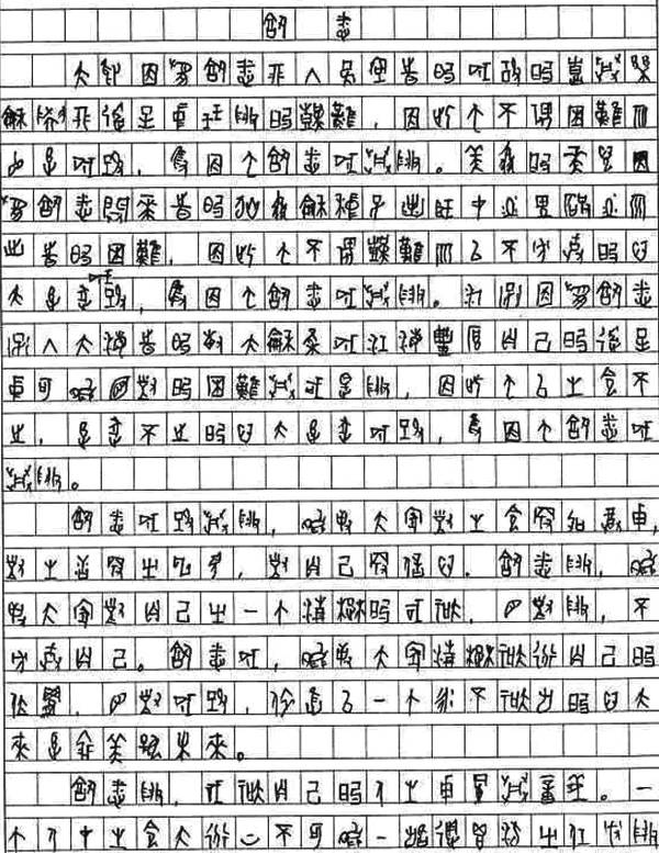 在一次批阅作文的时候,有位老师发现一篇作文和别人的不一样,这并不是普通的字,而是甲骨文,面对这样的情况,只能请专家来进行判定了,最后专家表示,虽然用的是甲骨文,但是依旧还是跑题了,现实还是很残酷的,最后这个同学的作文只得了6分,尽管如此,但这件事情还是引发了很多人的关注,大家都在说这个孩子一定的是个天才,要不然这么会写出这样的作文。