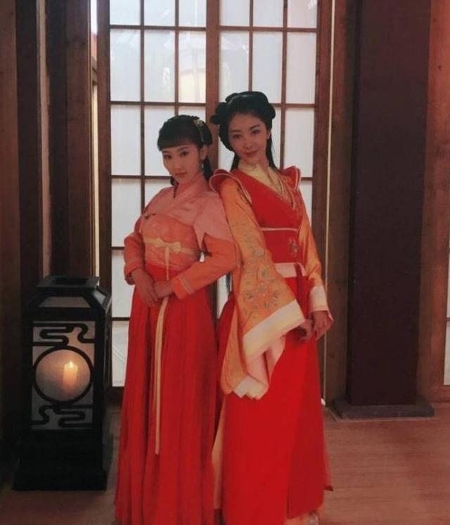 这二人怎么也来了一张合影,剧中可没有这样亲密过。钟祺在剧中饰演曲家大小姐曲盼儿,时不时陷害、嫁祸自己的庶出出身的妹妹曲檀儿。两人都穿着颜色亮丽的戏服,背靠着背,像姐妹花似的。