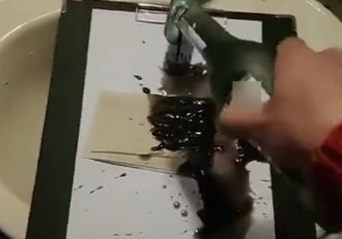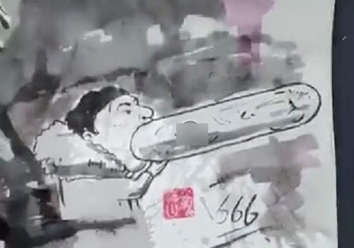 原来除了表情包,很多的网友热衷于用自己的方式去画王思聪,就比如这个作者,一开始看见他在泼水,泼类似于那种黑色的墨汁,但是不知道究竟是会干什么,后来泼完之后,又开始拿着画笔画了起来,所以看画面应该是再画一副山水画或者是水墨画了,这用笔的姿势还有颜色的把握都是很粗犷,而且还很大胆的,下笔也是毫不犹豫,果断坚定。