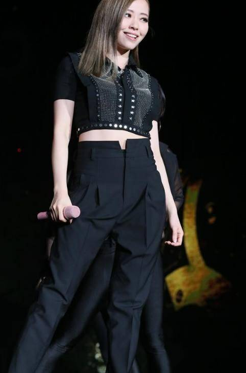 张靓颖身穿黑色短袖衬衫搭配黑裤,这样的造型帅气干练。高腰的设计秀出小蛮腰,裤装修身显高的设计大展凹凸有致的身材曲线,显得十分有女王气质。