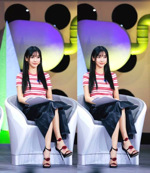 杨颖节目花絮照气质满分 刘海造型十分可爱