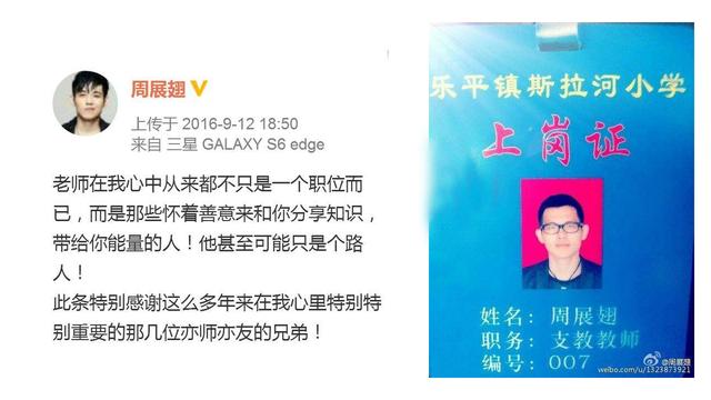 周展翅还曾经去过支教,成了一名光荣的支教老师,在那个偏远的学校,没有人知道周杰伦是谁,也没有人对他指指点点,他教孩子们体育和音乐。