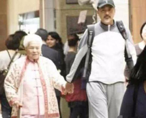 63岁周润发近照,牵手97岁妈妈散步很亲切,与爱妻相爱如初!