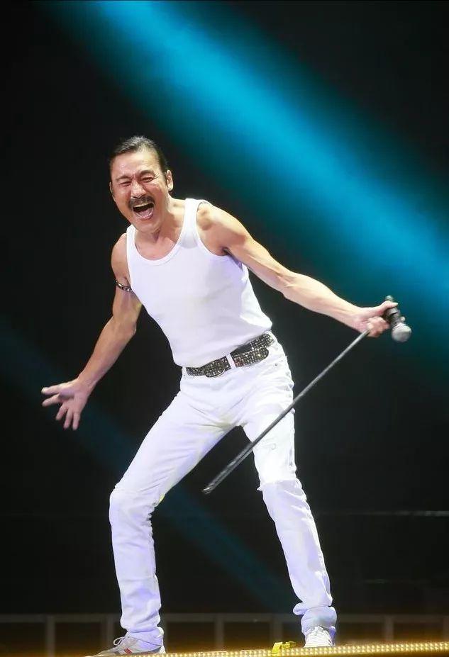 梁家辉今年已是花甲之年,但是他的身姿风采似乎不减当年。在助阵钟镇涛的红磡演唱会时身着白色背心配上同色牛仔裤真是男人味爆棚!他这一身造型模仿了著名摇滚乐队皇后乐队主唱弗莱迪·莫克里的经典造型,尽显摇滚风采。一身简单的穿搭,却被他演绎得魅力十足,真是越老越有男人味!