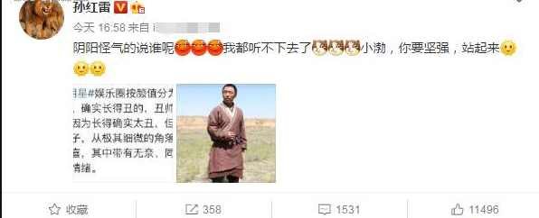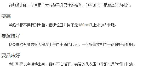 黄渤在娱乐圈中的长相也不算好看,但跟孙红雷其实也是差不多的,属于有魅力的男演员,喜欢的人是非常多的,若是按孙红雷截图上的表示来说,黄渤他俩就都是“丑帅”,但是“丑帅”也是有标准的!第一条就是要高,第二就是要演技好,之后并不是拿“显微镜”看,而是要耐看,这样的解释来看的话,“孙漂亮”似乎有些误解啊,可能他们都算不上“丑帅”吧?