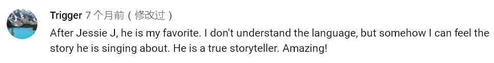 他从“实力唱将”变身为“全球新晋网红”!看看YouTube上的外国网友是怎么评价的: