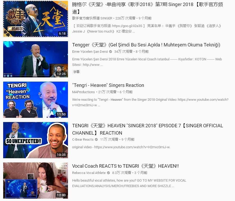 可以说,“Tengri”、“Heaven”已然成为YouTube上的高频热门词。