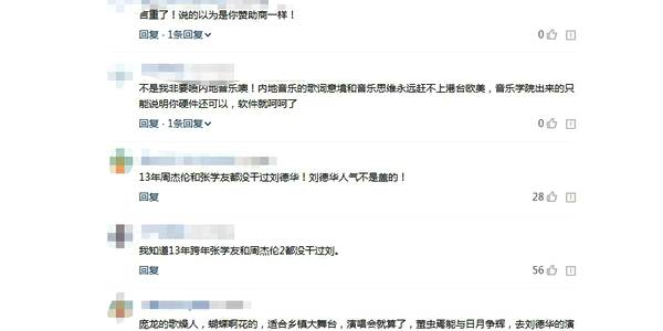 之后还有的人表示,刘德华的人气不是盖得,13年跨年演唱会上张学友加周杰伦都没有干过刘德华,看来刘德华的人气也是相当受肯定的。还有的人认为庞龙的歌燥人,适合乡镇舞台,演唱会就算了。总之网友们都各有看法,但是总的来说还是不看好庞龙的。