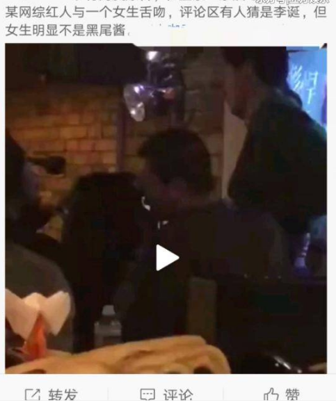 可是就在11月24日突然有网友爆料了一段李诞和某女子的亲密视频,网友还配文声称是在某酒吧看到的,疑似是某网综红人和一个女生在舌吻,大家也纷纷点开了视频,只见视频中的男女看起来来举止亲密,从背影看好像在接吻,一时之间大家都在感叹李诞人设崩塌。