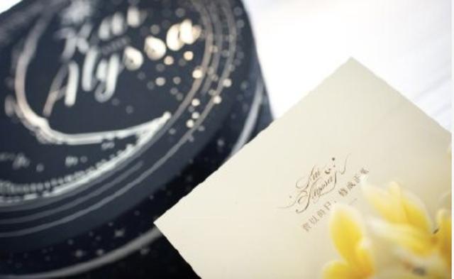 整个婚礼用的礼盒与喜帖都以“浪漫星空”为概念设计而成,礼盒上印着的月亮和布满星辰的星空低调奢华。而邀请嘉宾用的喜帖更是浪漫到极致,小卡片上,巧妙的镶嵌进两人的姓氏“贾”和“修”,组成一个浪漫至极的句子“贾以时日,修成正果”,原来还藏着这么一个8个字的真爱密码。从礼盒到卡片,都洋溢着小两口满满的幸福感。