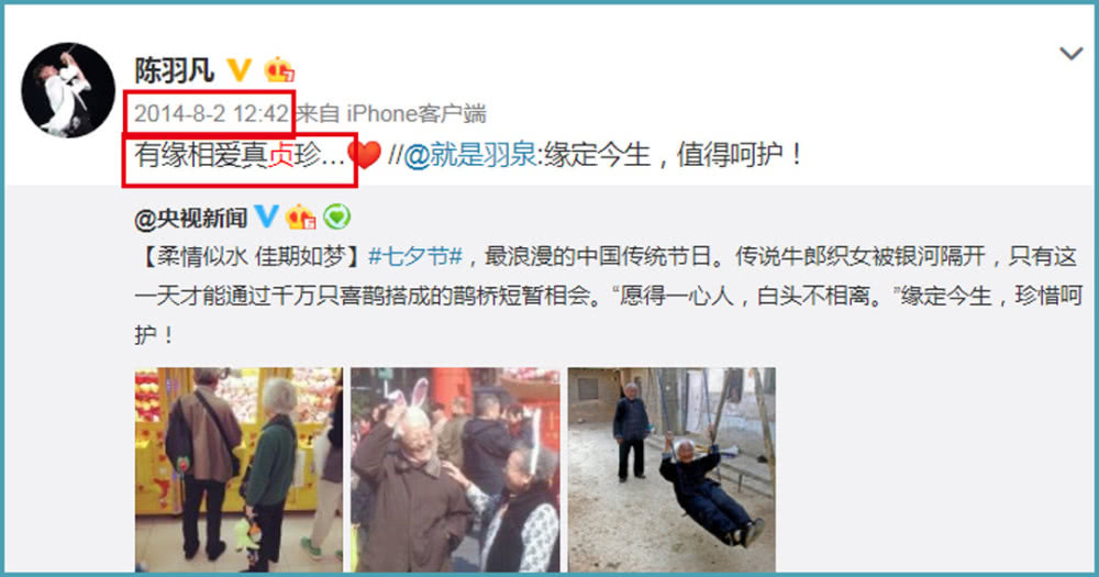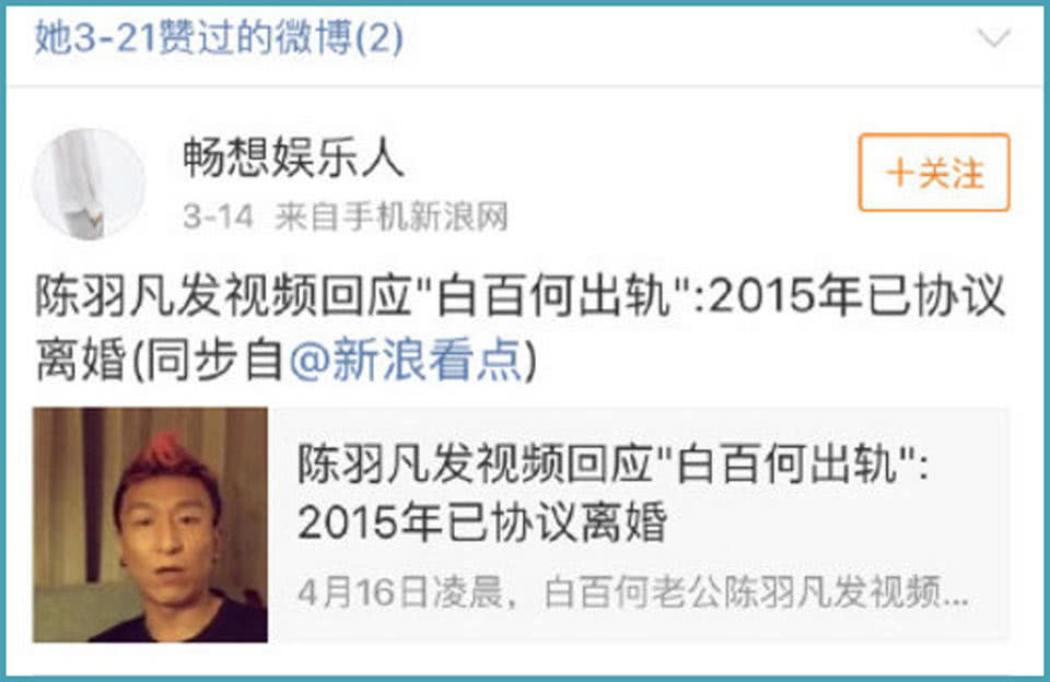 也许,那时候陈羽凡不方便直接曝光新恋情,因此与何时珍同学只好玩起了V博隔空传情的恋爱密码暗语游戏,实际上那时候陈羽凡与白百何已经离婚,却依然没有曝光这份恋情,谈个恋爱搞的像“接头”似的。