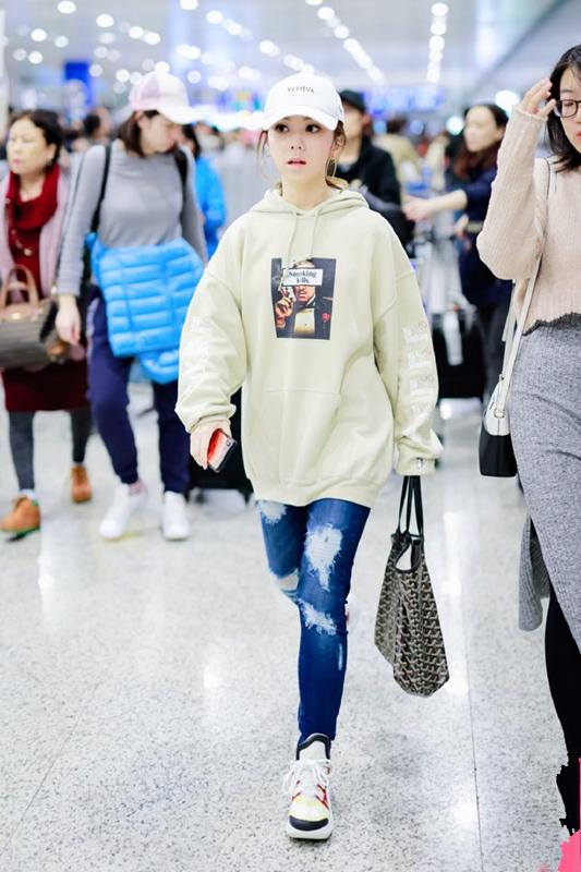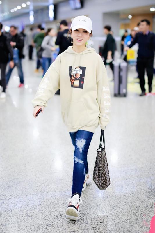 邓紫棋现身机场,穿卫衣休闲时髦,耳朵上有亮点
