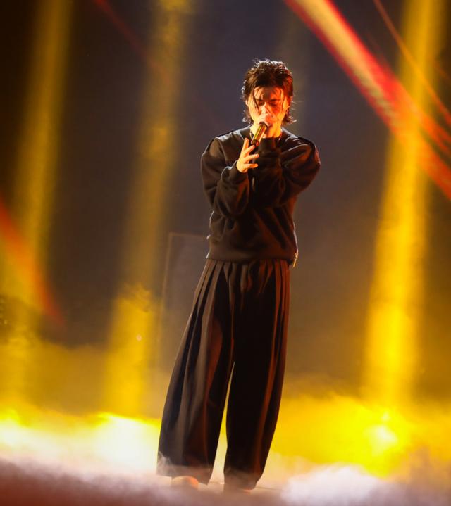 不过在节目中打歌时的他虽然只是静静的在台上唱歌,但是造型却是十分的帅气,舞台上的他瞬间就变成了“大狼狗”,果然认真的男人最帅了,梳着中分的发型穿着一身黑的服装,认真唱歌时的宫阁简直霸气十足,台风稳健。