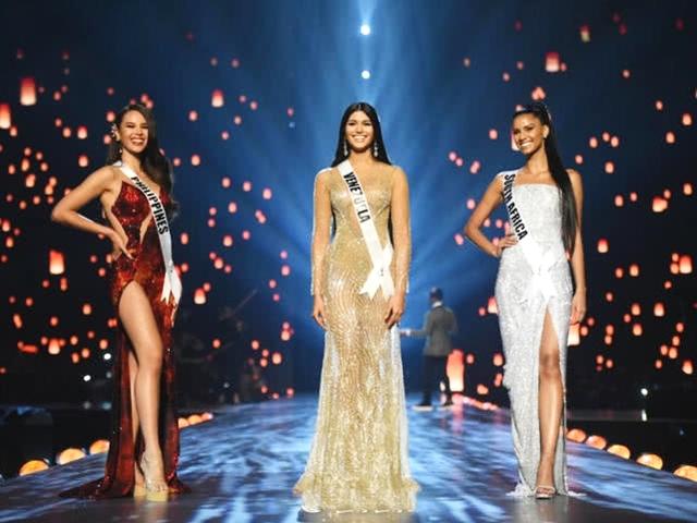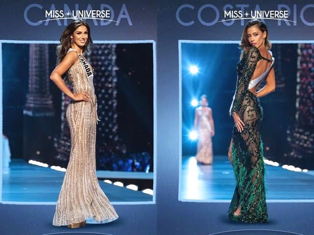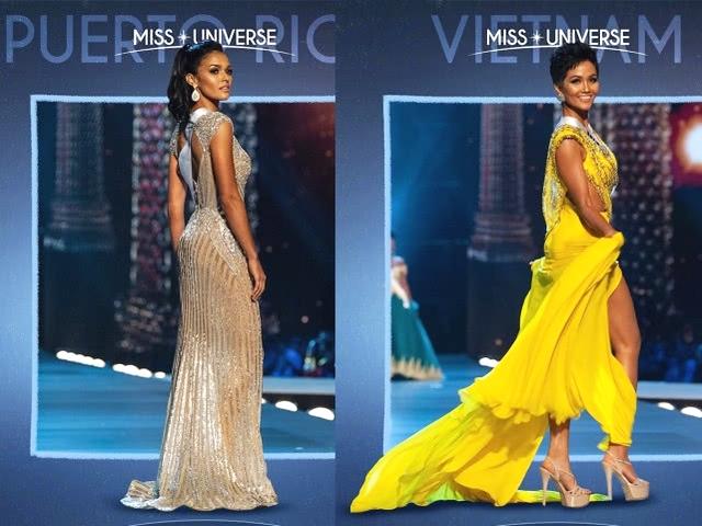 第四名和第五名的两位姑娘是来自波多黎各的kiara ortega(下图左),和来自越南的选手h'hen nie(下图右)。kiara ortega穿紧身亮片礼服裙,将凹凸有致的身材展现得淋漓尽致。越南姑娘穿一席亮黄色长裙,搭配一头短发造型,明艳动感。
