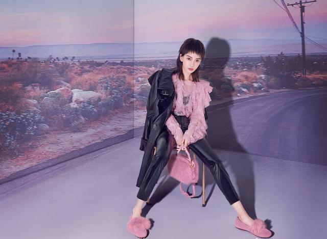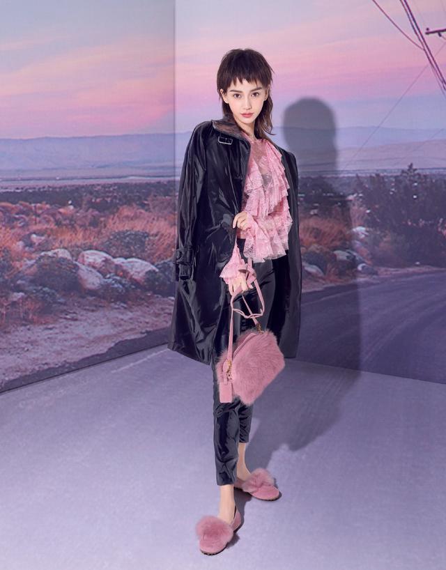 狗啃刘海的齐肩短发,搭配着粉色薄纱的上衣,帅气中有着甜美的一面,外面穿一件黑色的大衣,酷酷的,帅帅的。下面穿着黑色裤子和粉色的鞋子,也是又酷又甜啊!这一身造型虽然很个性,但也是很好看,杨颖很好的驾驭了起来,显得自己更个性一些。