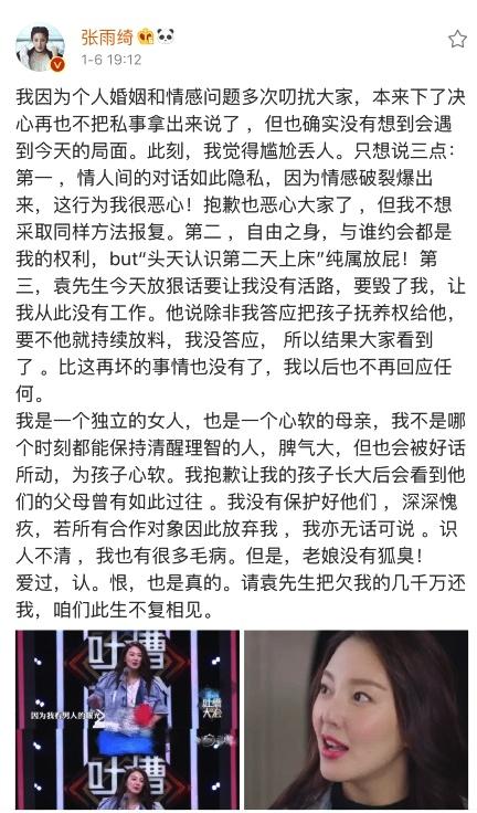 张雨绮被前夫曝出聊天记录,信息量太大!张雨绮:抱歉恶心大家了