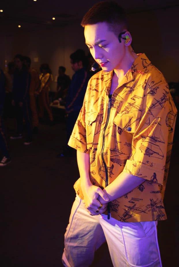 陈伟霆顶着板寸头,乌黑的短发,显得清爽帅气,把五官更好地展现出来。画上淡淡的妆容,看起来十分帅气,右手上的两只金戒指,很耀眼,像土豪。看他的表演服,真的太随意了!