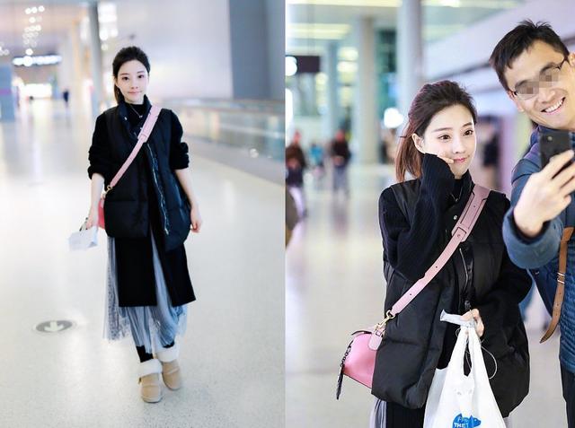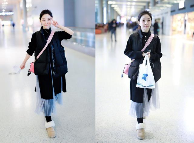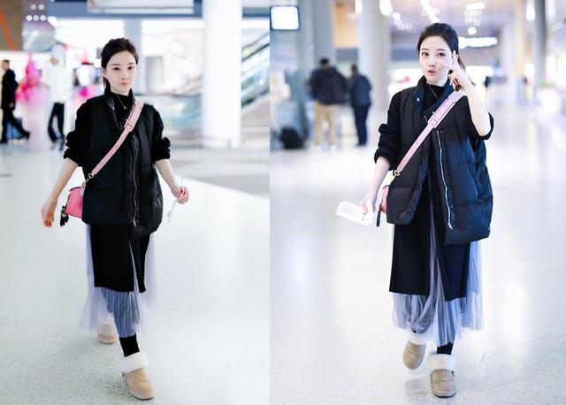 这次现身机场上半身穿了一件黑色的羽绒马甲,里面则是穿了一件黑色的针织衫,而且下面还是开叉设计的,看起来也是非常性感而又保暖了。但是冯提莫腿上明明穿了黑色的丝袜,搞不懂为什么有搭配了一件轻纱裙,到底是想要性感还是唯美呢。