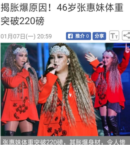 可以虽然说如今,近些年来,张惠妹却是因为种种原因,导致体重暴涨,在近日,港媒更是报道称张惠妹的体重已经突破了220磅了!