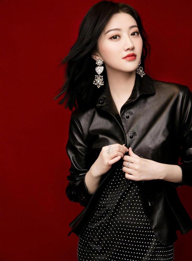 景甜终于穿对了,黑色皮衣搭配网纱裙性感又清纯,黑色穿搭就学她