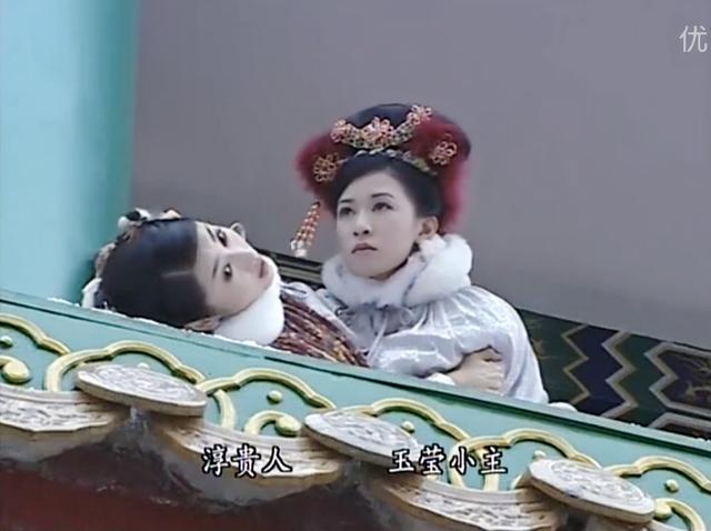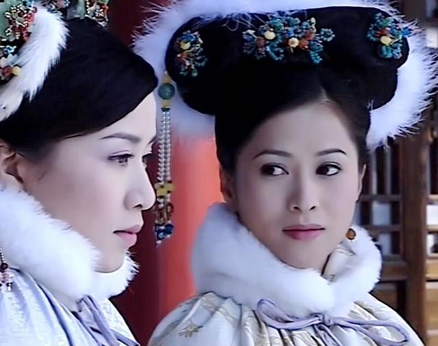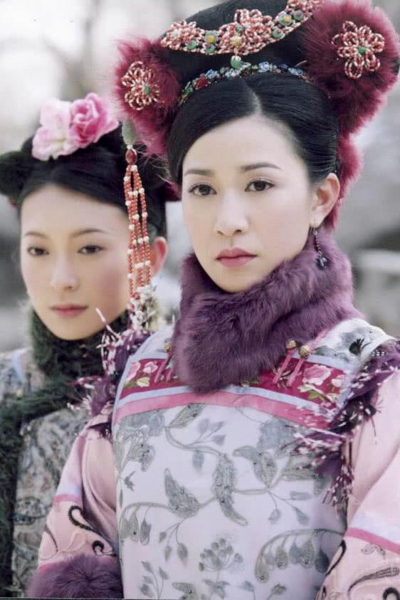 佘诗曼扮演的尔淳其实是福雅的亲妹妹,和姐姐一样,长相温柔乖巧,其实是宫斗高手,比国色天香的玉莹更早侍寝,获封为淳贵人。冬天尔淳经常穿暗红色的袄裙,她的旗头两端也是用暗红色绒毛装饰,背面看她的旗头,也有花簪装饰,十分精美用心。