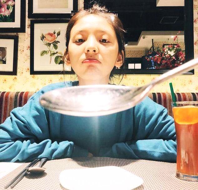 最后我们再来看看她素颜的样子,虽然没有了妆容,但是还是可以看出她皮肤的底子很好。坐在餐桌前嘟起嘴的样子十分的搞怪和可爱,让人十分喜欢。看来爱笑的女生运气总是不会差的,你们喜欢这位爱笑的章若楠吗?