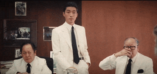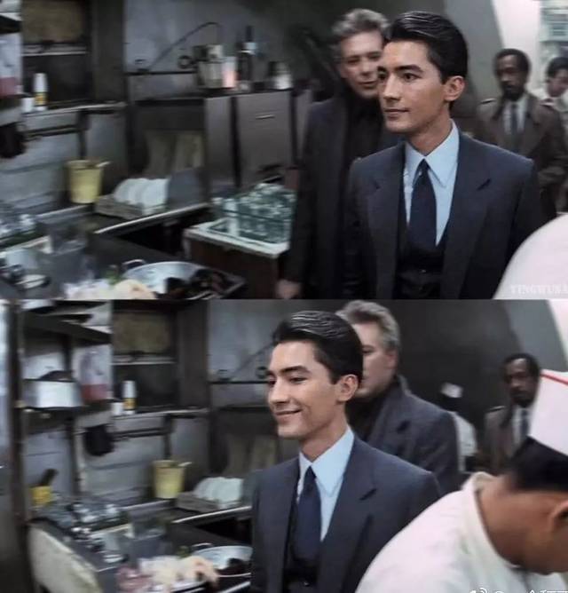 但比起张国荣,他的五官更硬朗,饰演黑帮老大,野心勃勃,心狠手辣却又风度翩翩,颇有一份枭雄的气概。