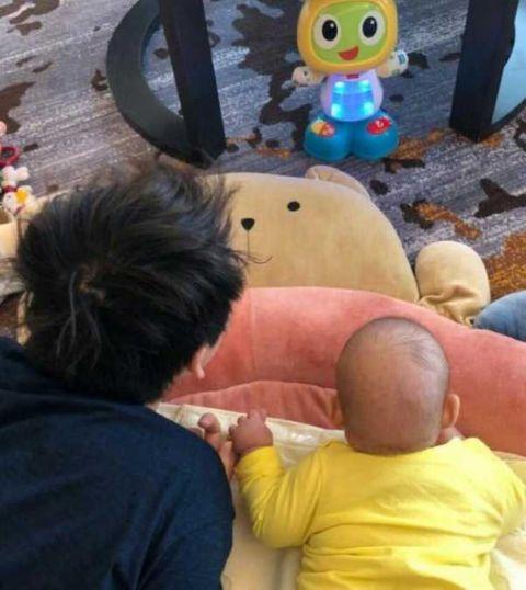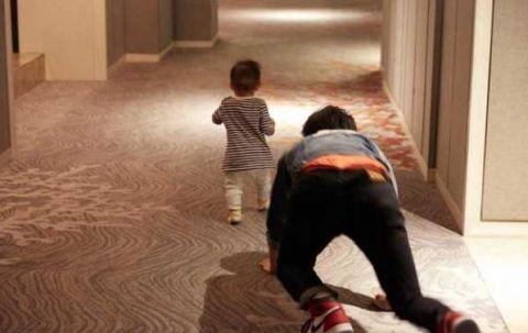 孙怡晒照“黑”董子健,女儿在前面的跑,爸爸在后面爬着追