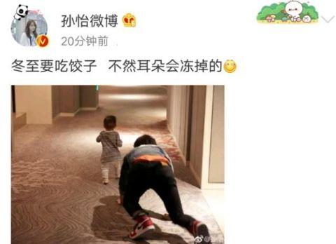 冬至那天有很多的明星都在自己的微博上发布了动态,而孙怡也在她的微博上给大家分享了一张她女儿和老在一起玩耍的照片,她跟说大家说“冬至要吃饺子,不然耳朵会冻掉”,她这个提示还是很贴心哦,就是不知道大家在导致那天有没有吃饺子呀。