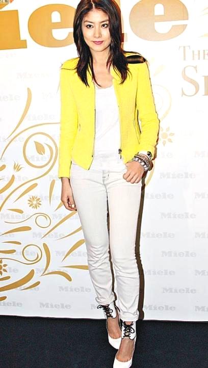 当然这么有个性的她还有许多不一样的造型,让我们一块看下吧。上身穿着一件黄色的外套,看着就很亮眼,下身配上一条白色的修身裤,完美地展现出一双长腿,脚上配上一双细高跟就更有魅力了。黄色本来就是一种很挑人的颜色,但是穿到她的身上却很适合,脚上鞋子上面还有绑带的设计,看着就更有亮点了。里面配上一件白色的打底,下身配上一条白色的裤子,上下颜色刚好相对应,就显得更有时髦感了。一头长发就这么披散下来,展现出最美的一面。