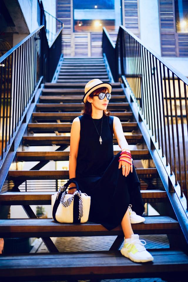 如今的张敏早已退出演艺圈,她独自一人过着隐居的惬意生活,身穿一款黑色民族风棉布裙,宽松的版型随性又大气,搭配一双白色运动鞋增添几分年轻的朝气,红色手串很有文艺气息,与戒指搭配又很时髦,是个佛性的气质美女没错了。