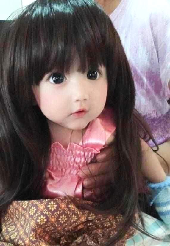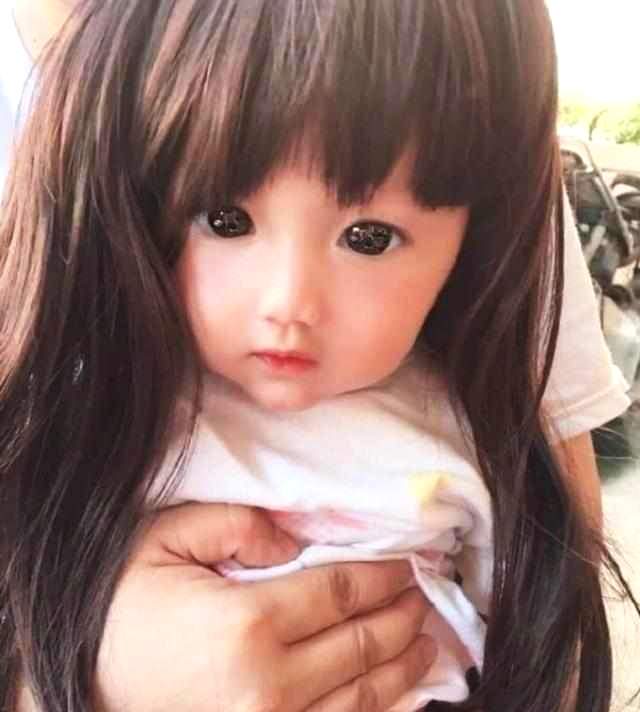 通过照片我们能看到这位萌娃有一双又大又圆的眼睛,白哲细腻的皮肤,肉嘟嘟的小脸蛋非常的可爱,再加上一头常常的头发难免让人怀疑是一个布娃娃,不过真是这样的吗?