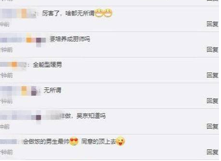 看到这一幕,网友都纷纷留言:“把硬汉的儿子硬生生养成家庭妇男”“要培养成厨师吗”“全能型暖男”“无所谓”。