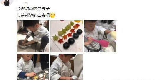 不得不说,谢楠还真是有想法把自己的儿子培养成家庭妇男。早前,谢楠就晒出了吴所谓制作甜品的照片,并发文说“会做甜点的男孩子应该能嫁的出去吧!”