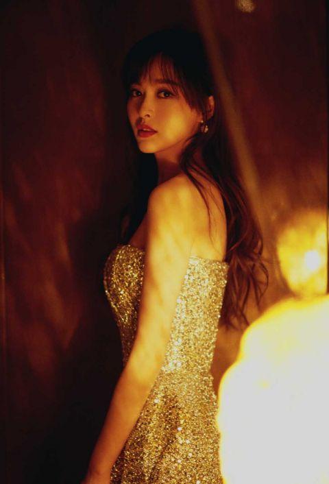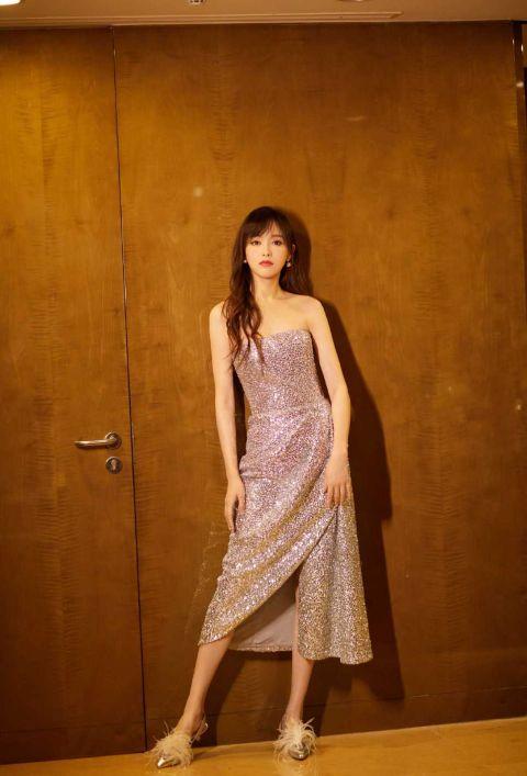 这一身穿搭完美的融合了她的气质,一件亮晶晶抹胸长裙,凸显出完美的锁骨,实在是抢镜,好身材的唐嫣,不管什么样的时尚单品都够很好的驾驭。
